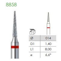 These diamond burs are suittable for working on hard materials like ceramic, glass, precious metals, porcelain, semiprecious stone, and enamel. Using a cooling liquid increases the tool lifespan.
