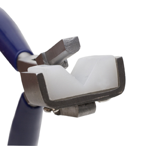 This tool, however, will never scratch a ring since the V-block is nylon and the single jaw is highly polished stainless steel.