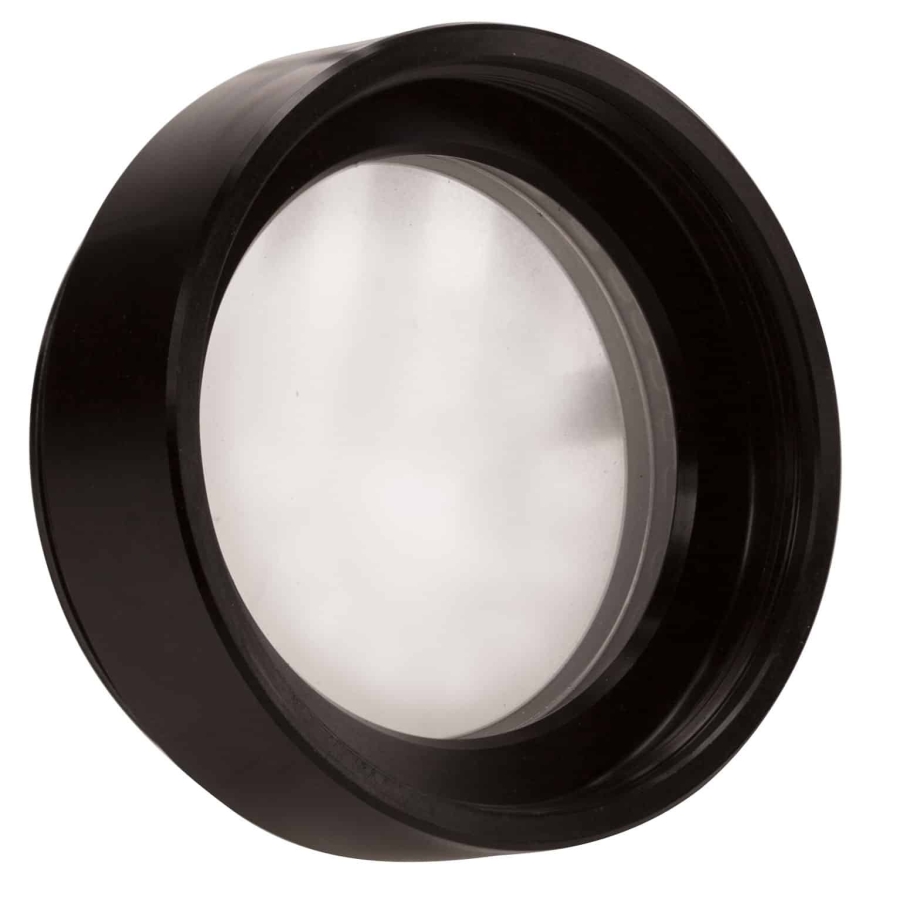 Adding an objective lens enables increased working distance and provides a greater field of view.
